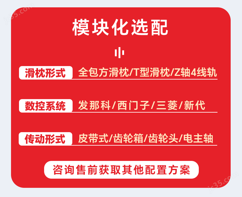 可選直聯(lián)式、皮帶式、齒輪箱式、電主軸,兼顧高速精密加工與大扭矩重切削。