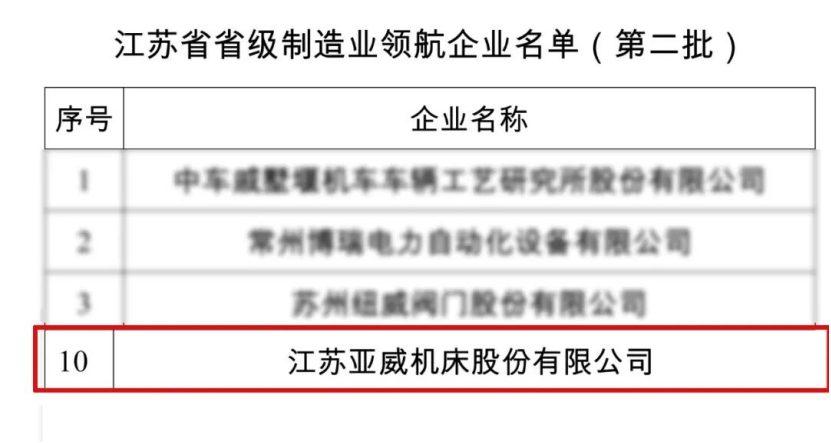 5、亞威股份成功入圍江蘇省省級制造業(yè)領(lǐng)航企業(yè)