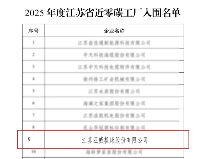 日前,江蘇省工信廳公示了30家江蘇省零碳(近零碳)工廠入選名單,亞威股份成功入圍。