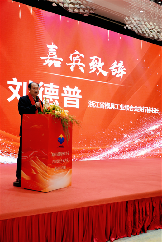 浙江省模具工業(yè)聯(lián)合會執(zhí)行秘書長劉德普應(yīng)邀致辭。他高度肯定了嘉興市模具行業(yè)協(xié)會近年來的工作成效與行業(yè)影響力,同時(shí)立足全省模具行業(yè)發(fā)展大局,結(jié)合行業(yè)發(fā)展趨勢,為嘉興模具行業(yè)的未來發(fā)展方向提供了前瞻性指引,鼓勵(lì)協(xié)會與會員企業(yè)把握機(jī)遇、乘勢而上。